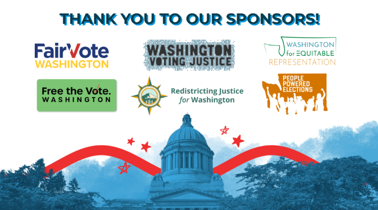 Thanks to our co-hosts: Washington for Equitable Representation, Redistricting Justice for Washington, People Powered Elections WA, and Free the Vote Washington.