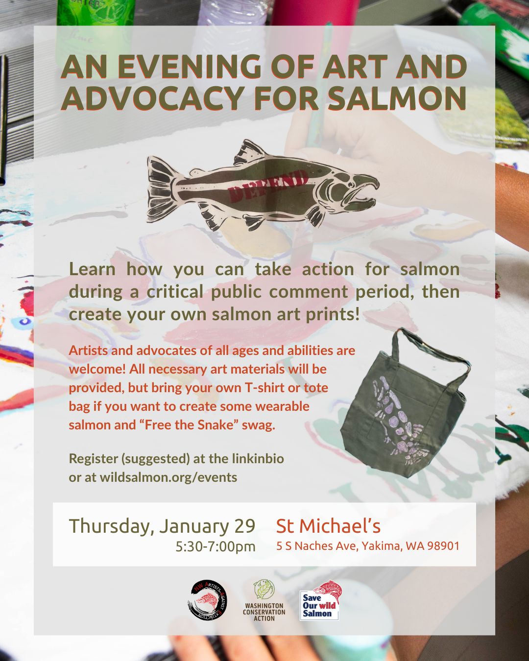 Join us for an evening of art and advocacy for salmon, presented in collaboration with Save Our Wild Salmon and Artists Against Extinction.