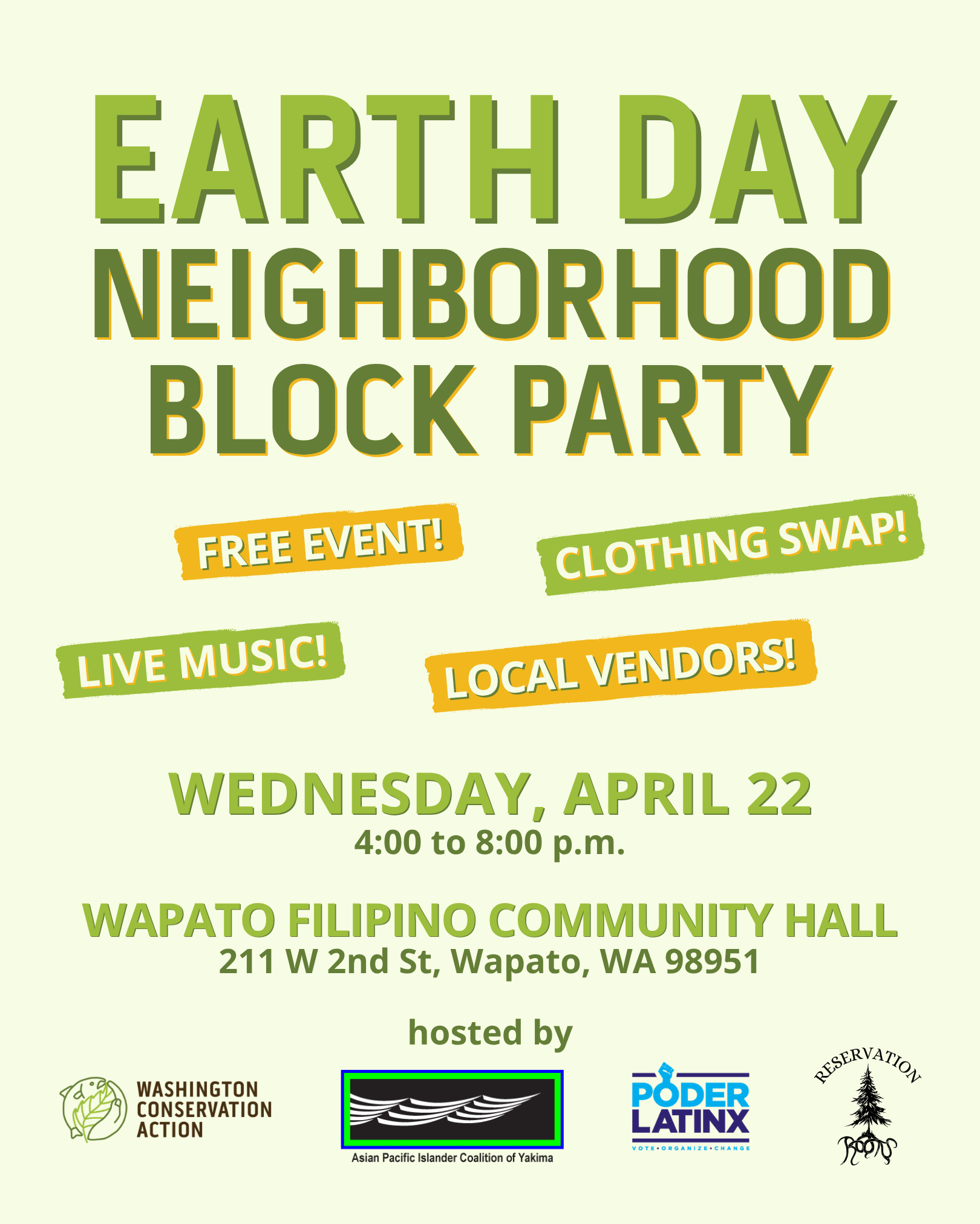 Mingle with local organizations, artists, and residents for an engaging afternoon of activities, resources, and connection. Come celebrate the Earth and explore the many ways our communities in the Yakima Valley connect with and care for our natural environment.